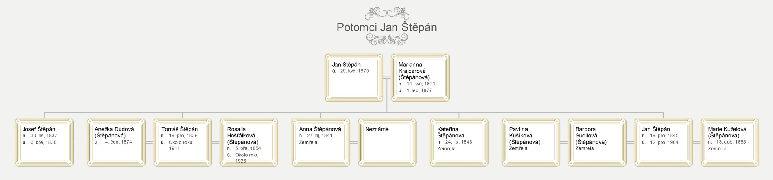 Jan Štěpán (? – 1870) se oženil 31. ledna 1837 s Mariannou Krajcarovou. Obývali opět dům č. 30 ve Chvalčově, zde se jim narodilo 5 dětí – synové Josef (1837 – 1838), Tomáš (1839 – 1911) a Jan (1845 – 1904) a dcery Anna (1841 – ?) a Kateřina (1843 – ?).